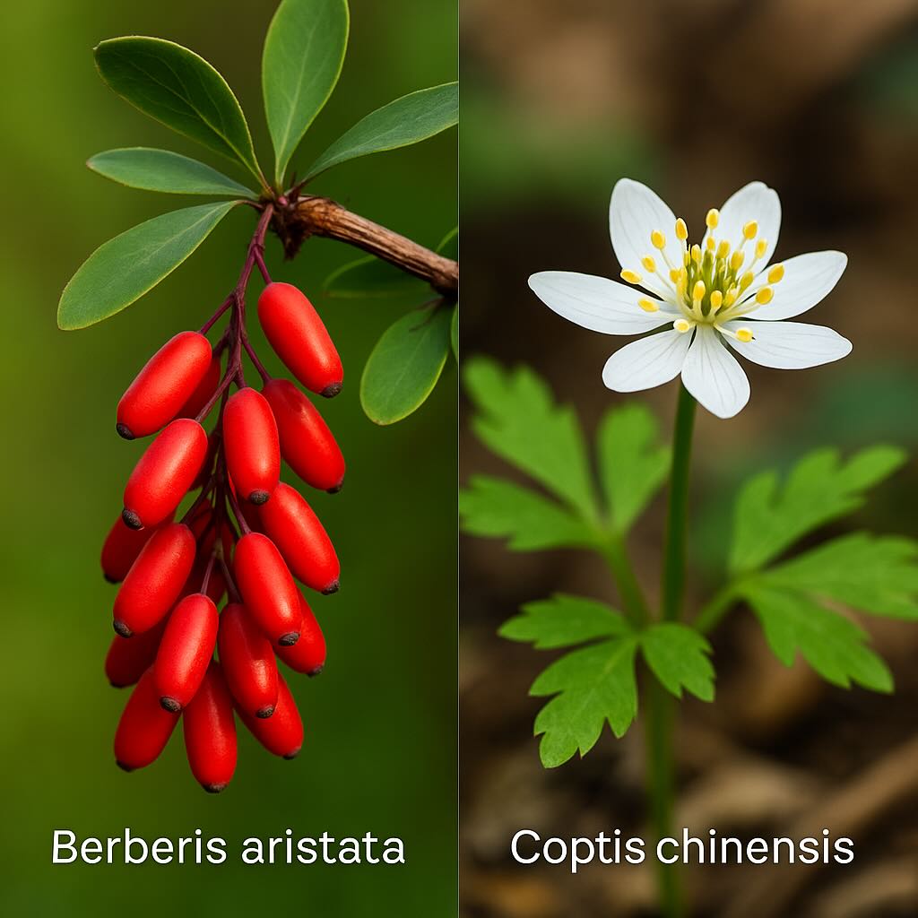 A berberina é um alcaloide natural de cor amarela, encontrado nas raízes, rizomas e cascas de várias plantas medicinais. Historicamente, era utilizada na Ásia para tratar disenteria, infecções intestinais e desequilíbrios digestivos. Seu nome deriva do gênero Berberis, um dos seus principais representantes botânicos.