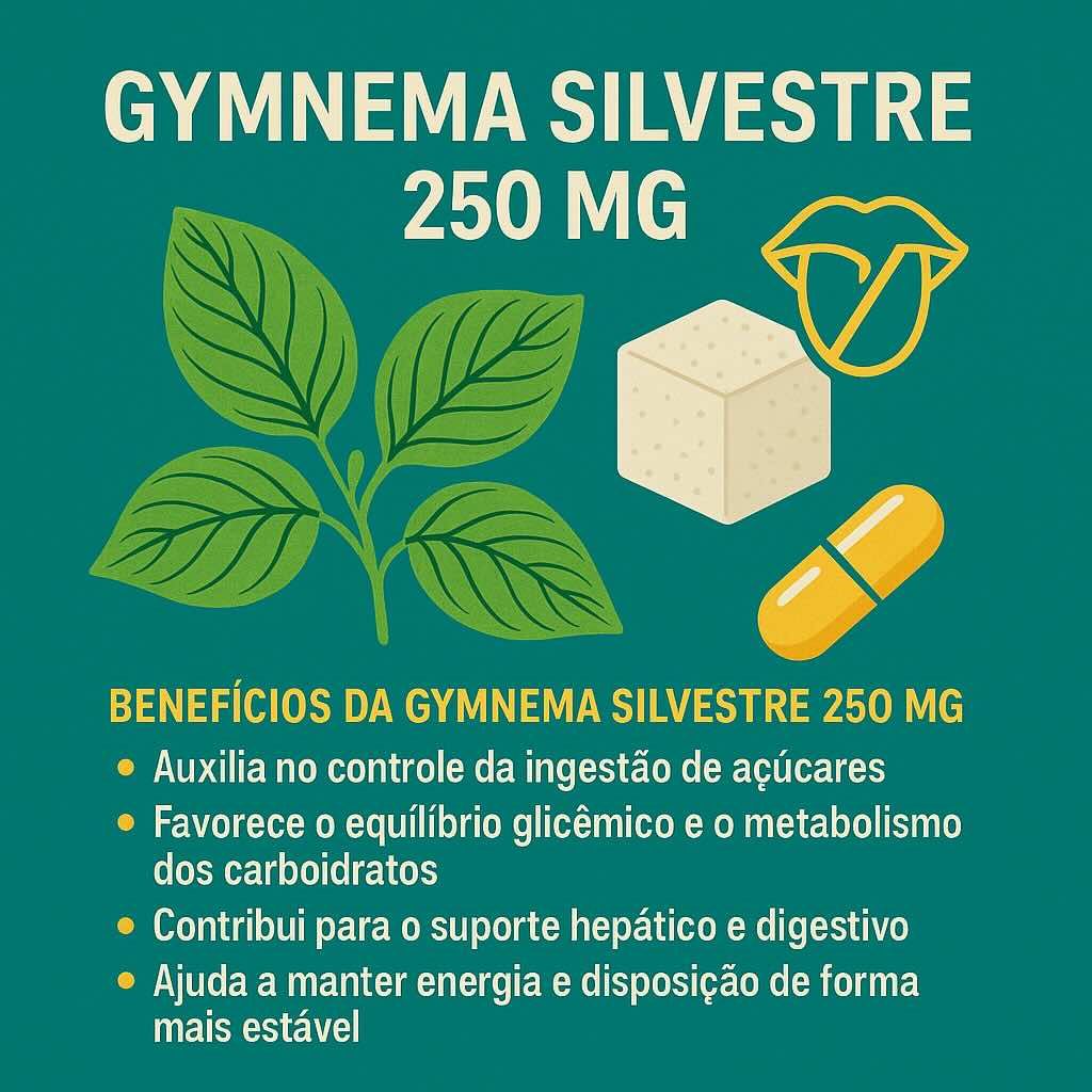 Um de seus efeitos mais conhecidos é a capacidade de reduzir temporariamente a percepção do sabor doce na língua, o que pode ajudar a diminuir o desejo por açúcar e alimentos muito açucarados. Ao mesmo tempo, a Gymnema silvestre oferece suporte ao metabolismo, à função hepática e ao bem-estar digestivo, tornando-se uma aliada em rotinas de alimentação consciente e equilíbrio metabólico.